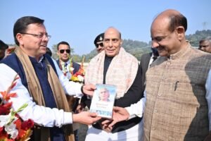 देहरादून । मुख्यमंत्री श्री पुष्कर सिंह धामी ने लोक सभा अध्यक्ष श्री ओम बिरला और केंद्रीय रक्षा मंत्री श्री राजनाथ सिंह के उत्तराखंड आगमन पर बी.एच.ई.एल हेलीपेड पर स्वागत किया एवं पुस्तक भेंट की।