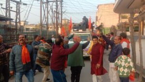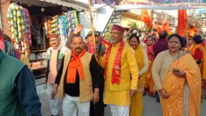 देहरादून । राष्ट्रीय स्वयंसेवक संघ के नेतृत्व में आज स्थानीय केदारपुरम एमडीडीए कालोनी वार्ड नंबर 58 में निकाली गयी अयोध्या में श्रीराम मंदिर अक्षत पूजित कलश यात्रा में गूंजे भगवान श्रीराम के जयकारों से क्षेत्र का माहौल राममय हो उठा।शोभायात्रा में सिर पर अक्षत पूजित कलश उठाए क्षेत्रीय पार्षद श्रीमती सुशीला जहां आगे – आगे चल रही थीं वहीं राम भक्त भगवा ध्वज उठाए नाचते – गाते भगवान श्रीराम की जय के नारे लगाते चल रहे थे।